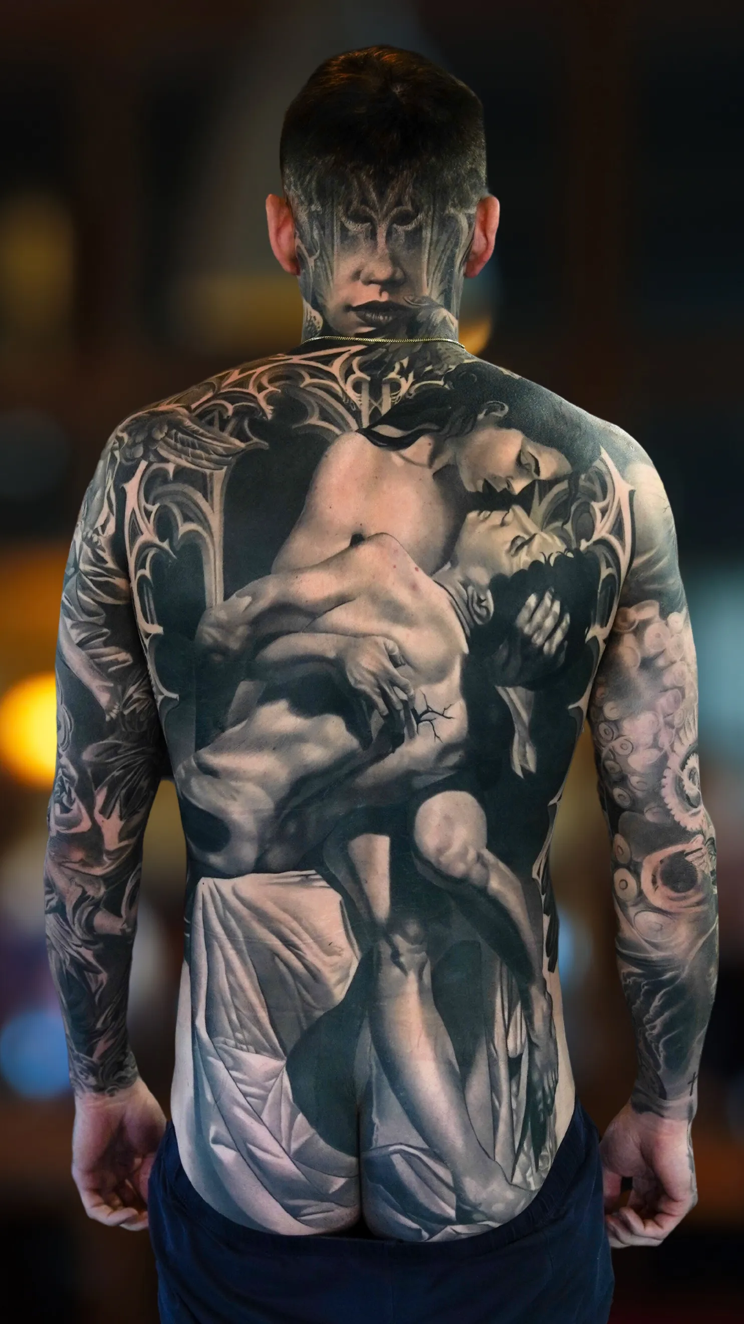 By 2018, he noticed that "decent" tattoos were becoming common. The market was evolving, materials were better, and new artists were achieving acceptable results sooner. That was the moment he decided to step beyond. Instead of just focusing on technique, he shifted his entire focus to large-scale projects, studying anatomy, body flow, and composition to create pieces that worked as complete body suits rather than just isolated images.